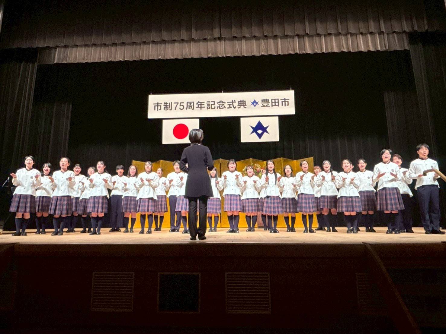 小学2年生から高校1年生までの28名が、豊田市少年少女合唱団ジュニアとして、「そうらん節」「ほほう!」「おお牧場はみどり」の3曲を披露したほか、合同演奏では「ふじの山」を演奏しました🗻